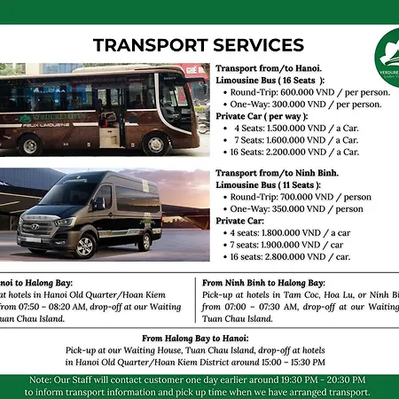 Het telefoonnummer van Verdure Lotus Classic Cruise On Lan Ha Bay is niet beschikbaar op onze site, als u Verdure Lotus Classic Cruise On Lan Ha Bay wilt bellen, bezoek dan de site van een hotel